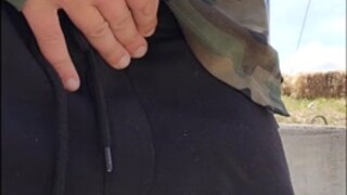 Young twink masturbate and cum outside in public